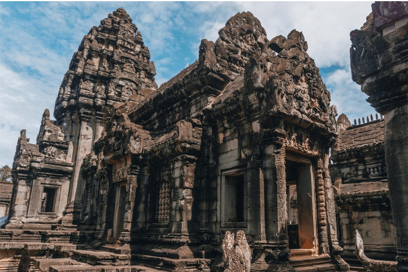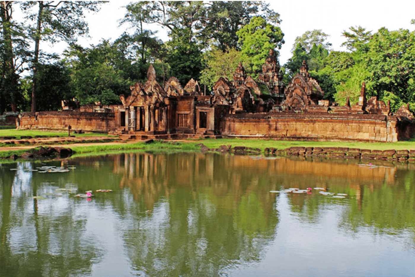 In the morning, you visit Banteay Srey, a small temple of sumptuously sculpted pink sandstone and often considered the jewel of Khmer art.