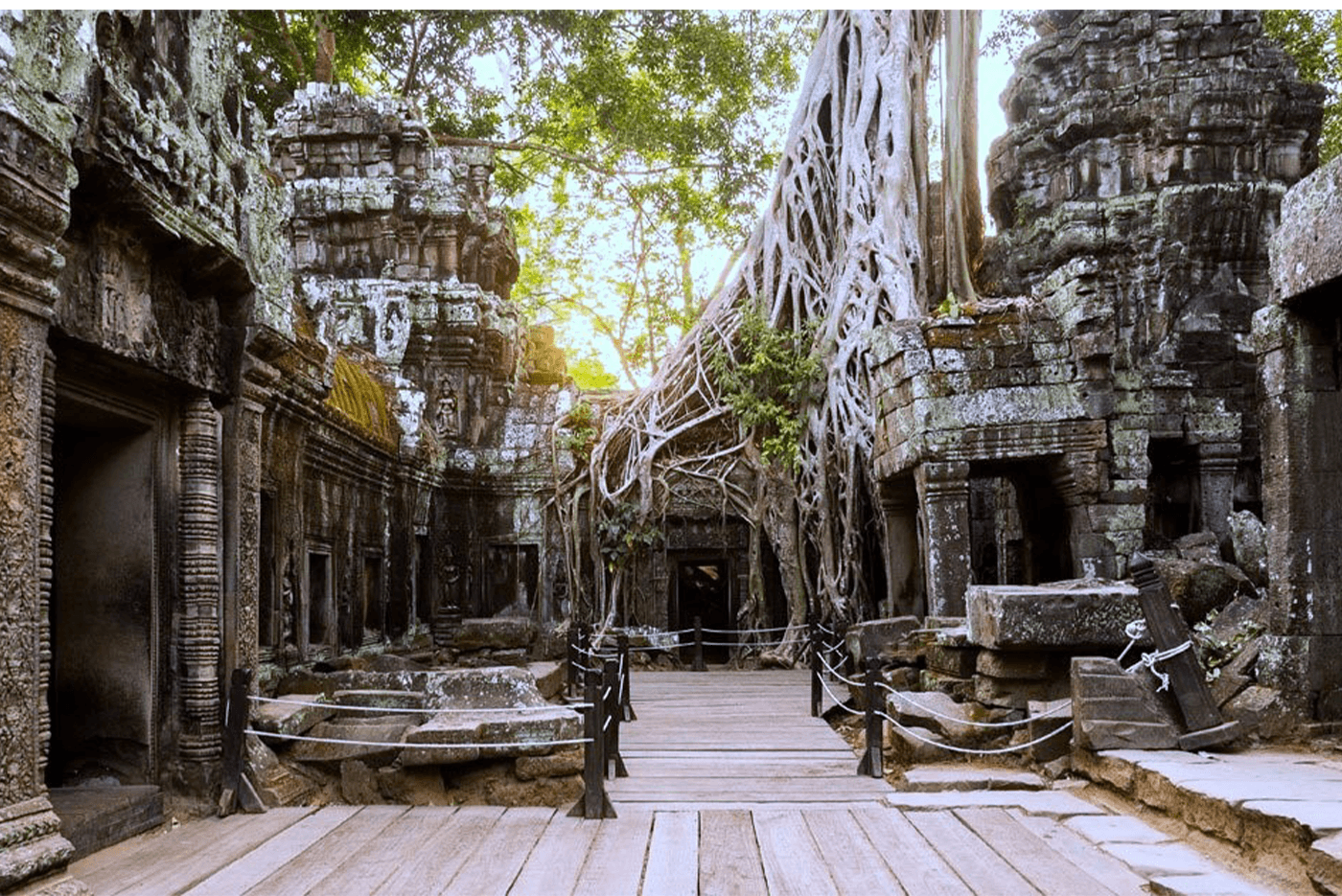 In the afternoon, explore the royal monastery of Ta Prohm founded by the great Buddhist king Jayavarman VII at the end of the 12th century. The lush vegetation of this vast complex was kept as an example to show the effort of the clearing and restoration work accomplished by France since 1908.