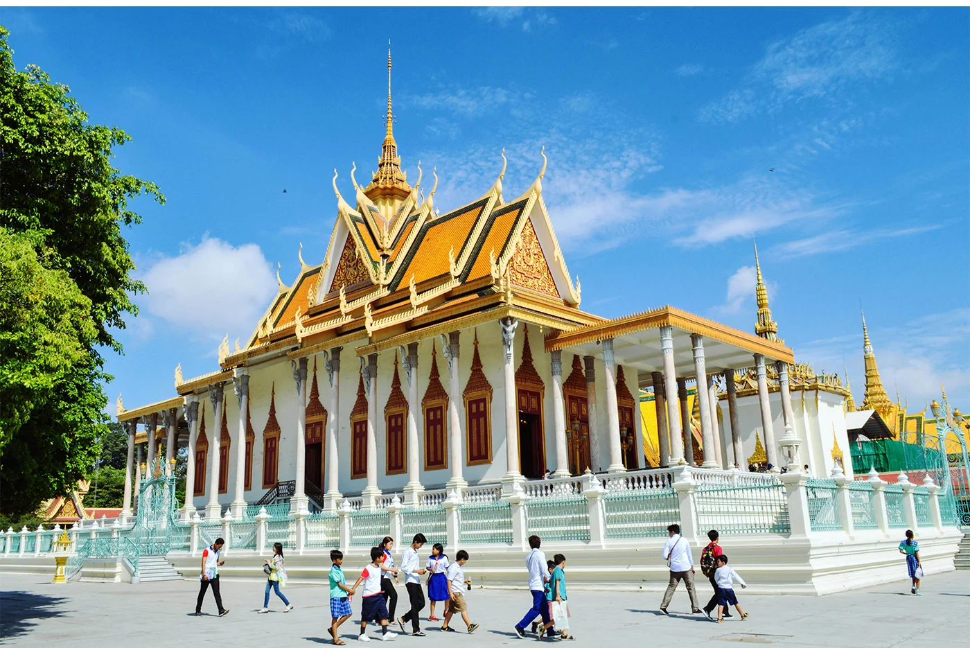 In the afternoon, visit the Royal Palace built in 1866 by King Norodom I, consisting of different structures grouped together in an enclosure, such as the Silver Pagoda housing masterpieces such as a solid gold Buddha encrusted with 9,584 diamonds and weighing 90 kg as well as the Emerald Buddha in Baccarat crystal, dating from the 17th century.