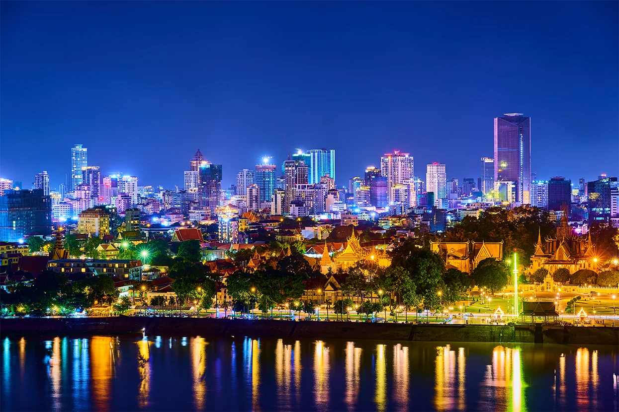 Note: The visit to the Royal Palace requires visitors to cover their shoulders and wear long pants or a long skirt. Then sail on the Tonlé Chaktomuk for an hour of cruise and admire the magnificent sunset over the capital (not private). Free dinner. Night at the hotel.
