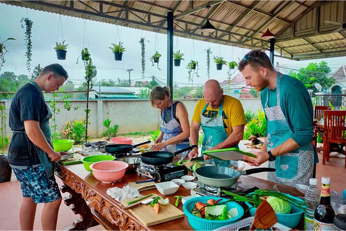 Departure from your hotel after breakfast with a trip of about 15 km from Siem Reap. Arrival at the local market in Pourk where the appointment with Mrs. Thavy to buy vegetables, freshwater fish, meat, spices. Then you will join the pretty traditional wooden house of this nice Cambodian family to prepare typical dishes. Then, accompanied by your hosts, you will go to the pagoda to make an offering of part of your culinary preparations. You will have the opportunity to live the unique experience of a Buddhist blessing. After a short chant, the monk will bless you with lustral water. This ritual, very popular among the Khmers, aims to chase away evil spirits, such as illness or bad luck! Back at Mrs. Theavy's, you will have lunch with the rest of the prepared dishes.