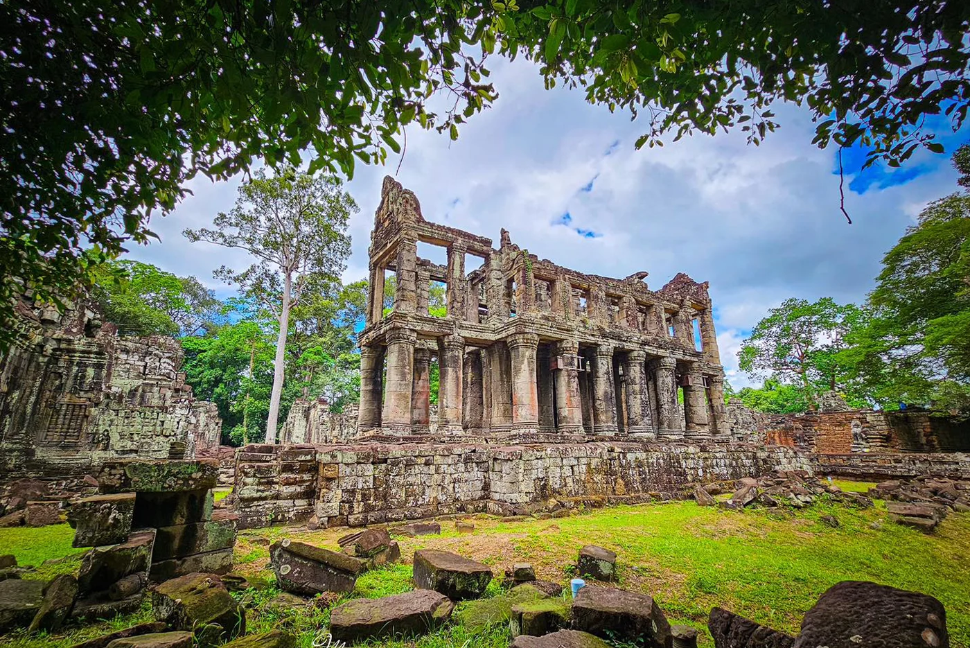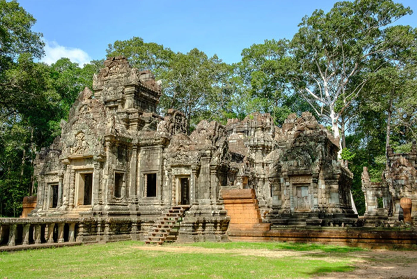 Your excursion today will be on a tuk tuk. This motor tricycle is an essential part of the Asian landscape. Head for Preah Khan. This temple built at the end of the 12th century commemorates the first Buddhist king of the "Great Vehicle" or Mahayana path. Here again, the vegetation has taken over, but the lichens and the fromagers in symbiosis with the stones will not prevent you from admiring the frieze sculptures and the vaulted corridors. Nearby, you will also visit a work of King Jayavarman VII, who was at the origin of many buildings. Thus, the Jayatataka is a Baray, a sort of basin, which has a temple island in its middle and is framed by four other smaller basins. The configuration of the place evokes a mythical lake in the Himalayas called Anavatapta.