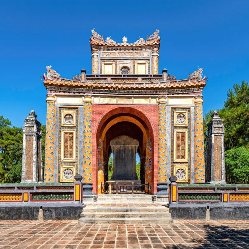 Just outside Hue, visit the Thien Mu Pagoda on the bank of the Perfume River, which was a hotbed of anti-government protest during the early 1960s. Next, visit the complex of the Tomb of Emperor Minh Mang, built in 1840, which is known for its magnificent architecture and elaborate decorations and is considered one of Hue's most beautiful pagodas. After lunch at a local restaurant, visit Tu Duc Tomb, which was built for meditation, reading and theater performances in a tranquil setting of forested hills and lakes. Your final stop is at Khai Dinh, the last monument of the Nguyen dynasty. It has a remarkably long staircase flanked by dragons, ceiling murals and ceramic frescoes. Return to your hotel on the riverbank where your Art Deco inspired rooms are reminiscent of the 1920s and 1950s. Overnight in Hue City.