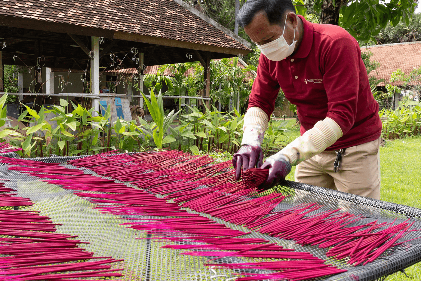 Possibility to rest in the hammocks. In the afternoon, by bike or on foot, you immerse yourself in local life in the heart of the Khmer countryside. Discover along the way the colorful pagodas, the small markets, meet the children returning from school, the villagers thanks to the help of your guide and translator. During your walk you will discover the local specificities and receive the necessary information to understand the lifestyles, the social realities as well as the local agricultural activities, workshops of the spices Senteur d'Angkor.